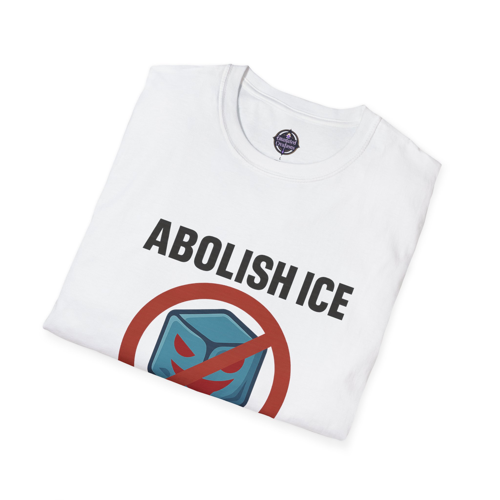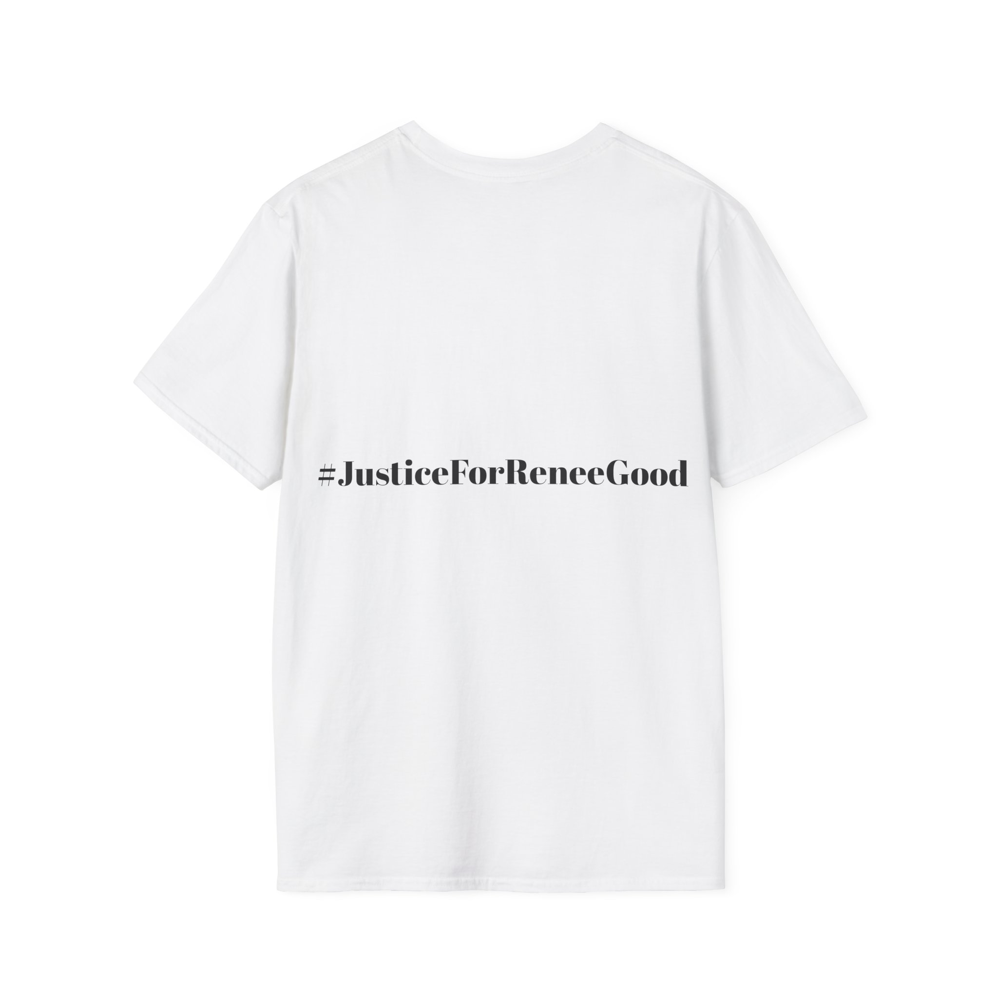 A soft, simple statement tee that carries a clear call for accountability. Lightweight ring-spun cotton feels gentle against the skin while bold front artwork—an ice cube icon with blood dripping from its mouth crossed out and the message "ABOLISH ICE / ABOLISH ABUSE OF POWER"—makes the intent unmistakable. The back features a bold hashtag line for Renee Good, turning the shirt into a wearable act of solidarity. Wear it to rallies, community meetings, or quiet days when you want your values visible without shouting. The classic crew cut and clean lines tuck easily under jackets or stand alone as a direct, everyday message. Durable printing and a smooth knit mean the design holds through washes and wear, so your support stays consistent.